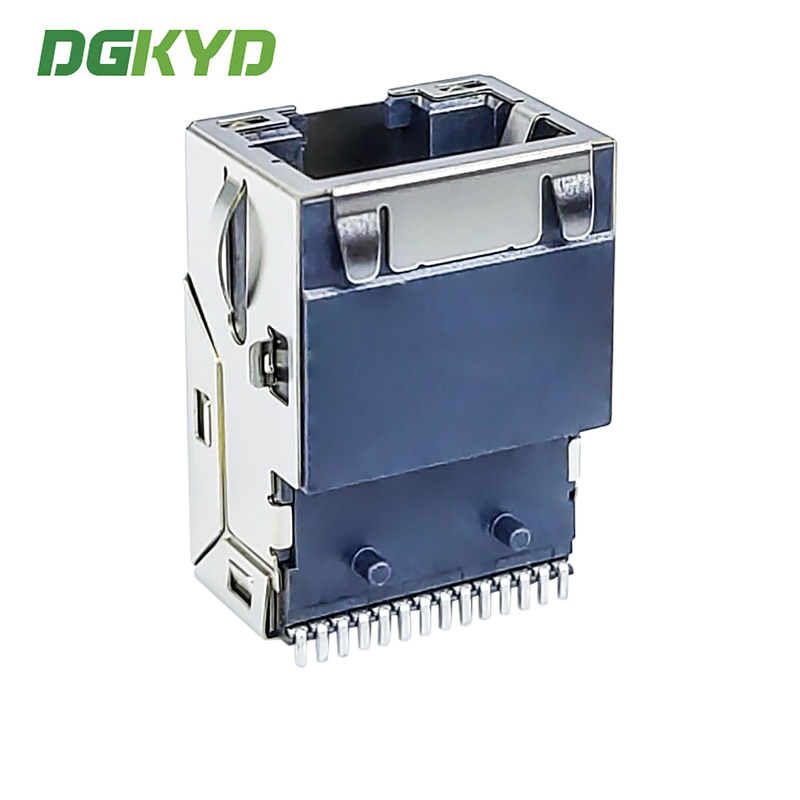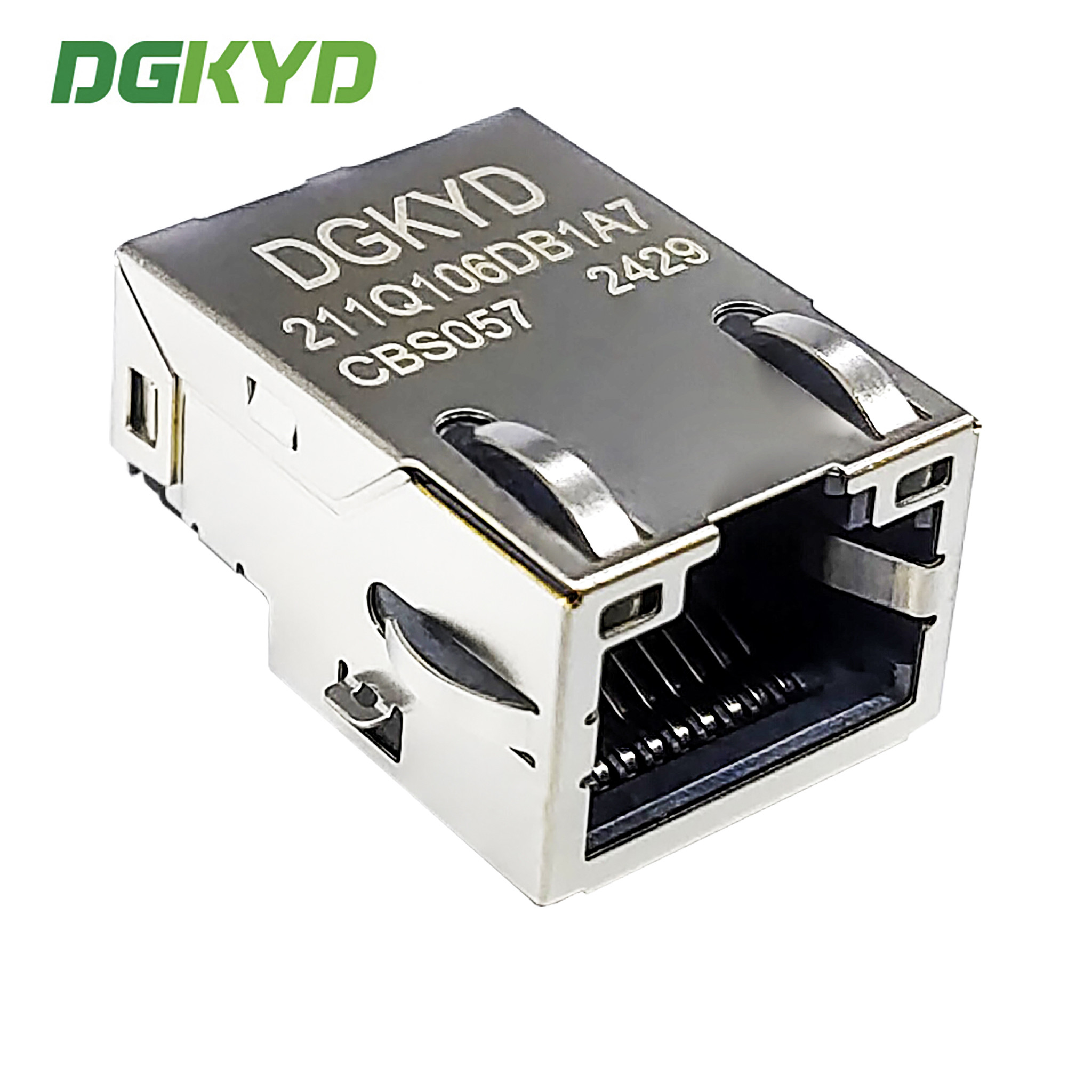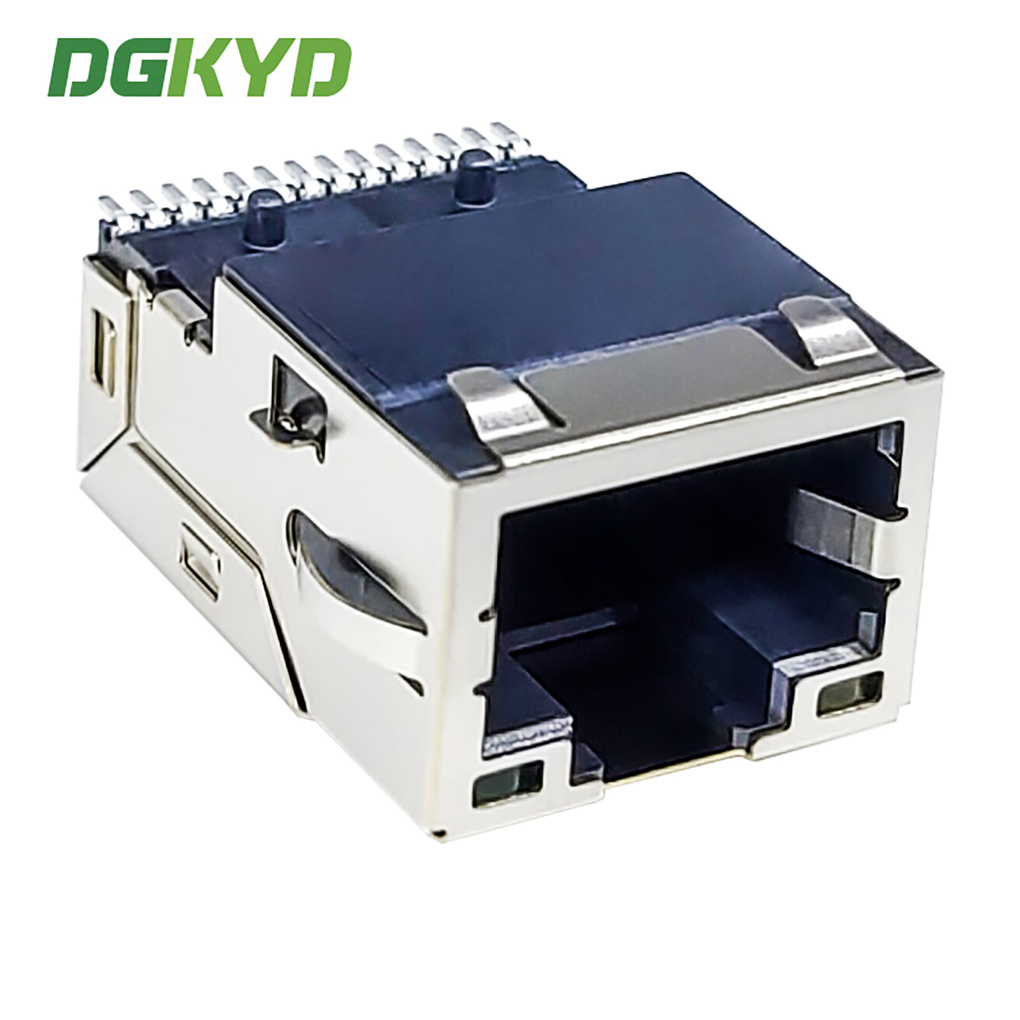 Металлический щит с низким профилем Rj45 Jack SMT RJ45 соединитель раковины 4.2 DIP с щитом и светом DGKYDCB421188AB1W6DB1075