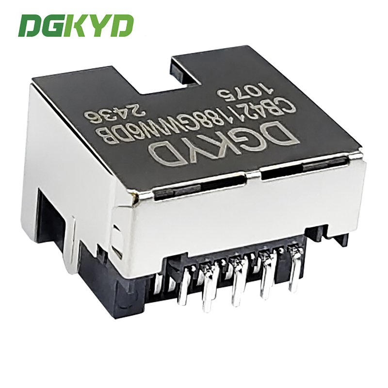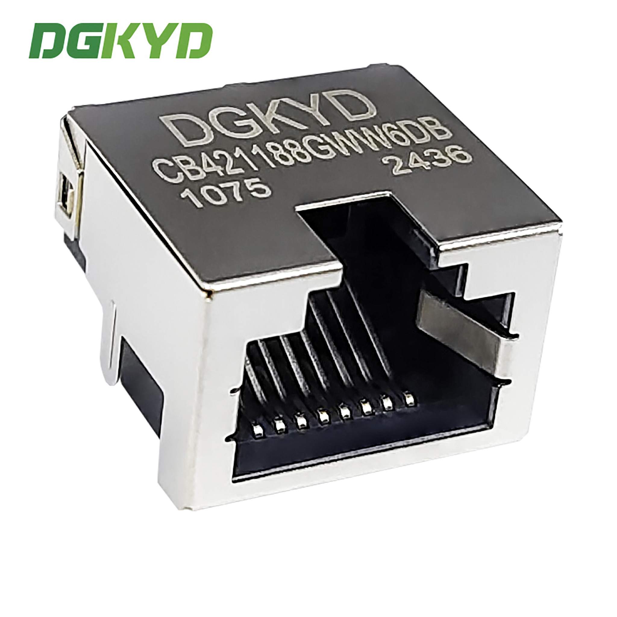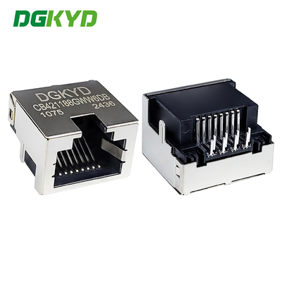 Металлический щит с низким профилем Rj45 Jack SMT RJ45 соединитель раковины 4.2 DIP с щитом и светом DGKYDCB421188AB1W6DB1075