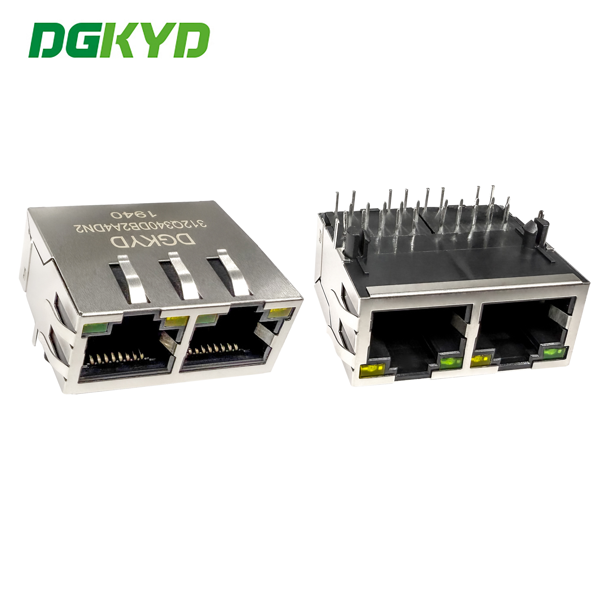 Разъем RJ45 со встроенным трансформатором 10G с индикатором и экранированием DGKYD111Q594AB2A12DB1